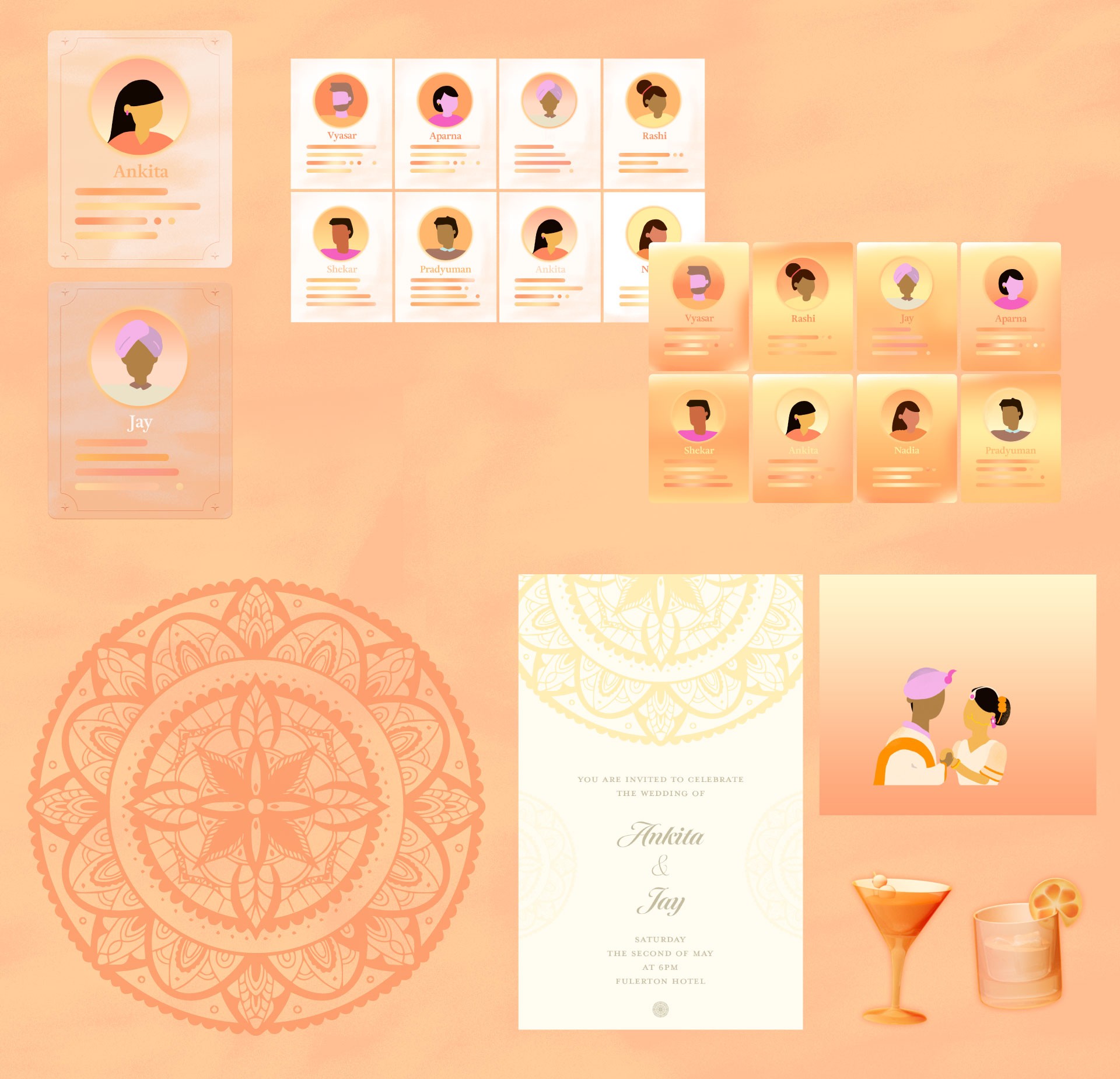 From Biodata to Wedding Invitation Matchmaking involves the efforts of more than just the matchmaker. Prospective couples agree to meet based on their biodata profiles, hoping to feel a connection, which can be challenging in today’s dating world. I find the arranged marriage culture in India fascinating, and Sima Auntie’s traditional matchmaking process adds an intriguing layer to it. Inspired by this, I focused on Sima Auntie’s old-fashioned methods by designing 3D graphics with a 2D hand-crafted aesthetic.